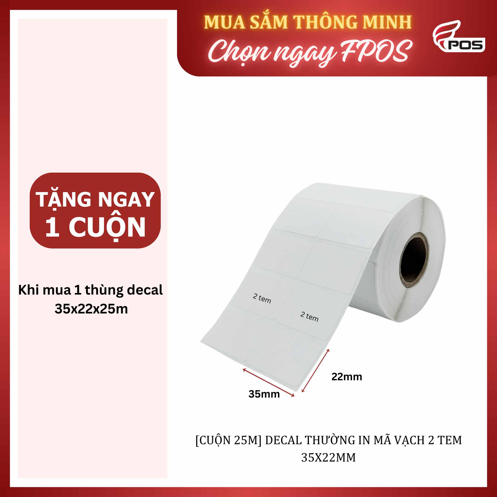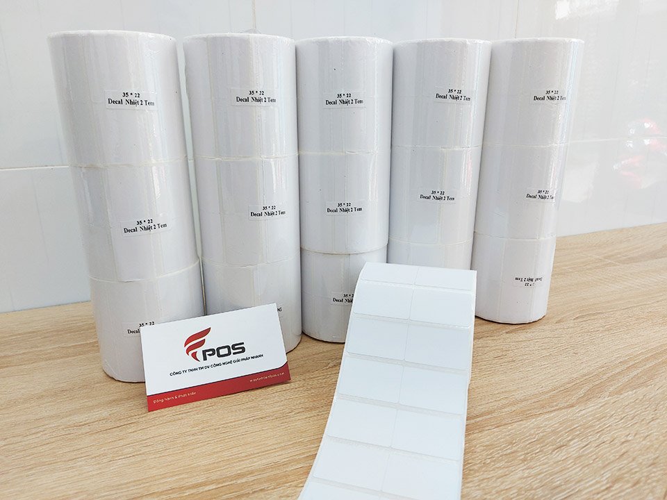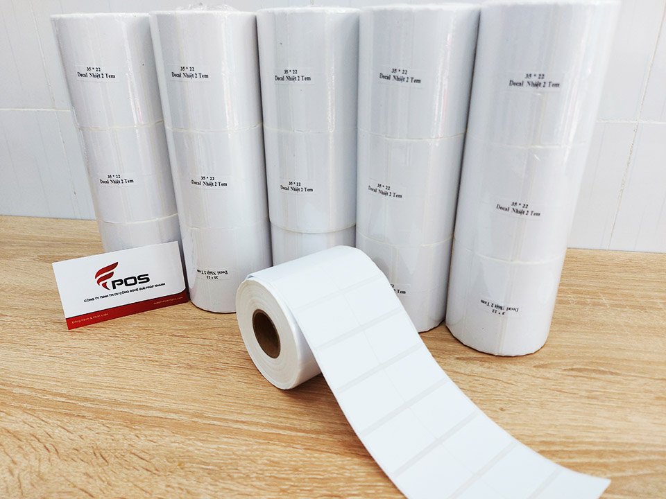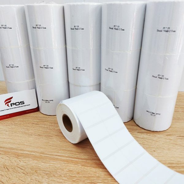 [Cuộn 25m] Giấy in mã vạch, decal nhiệt 35×22, 2 tem/hàng