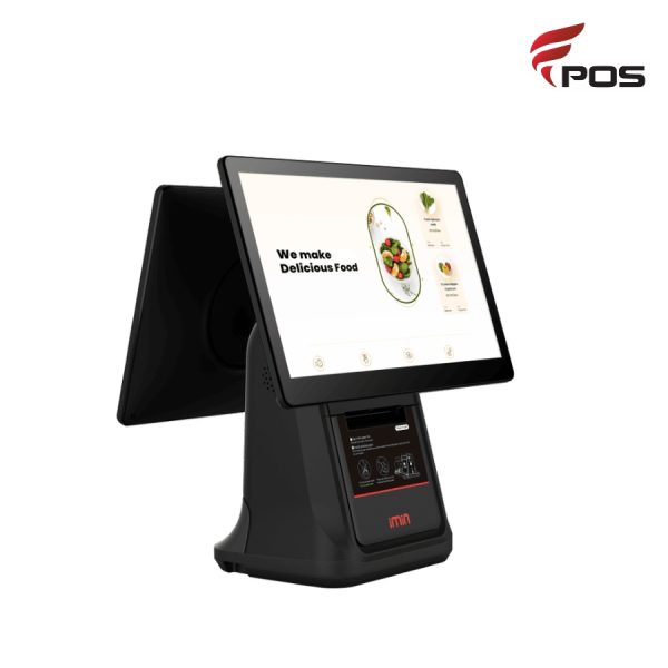 Máy POS IMIN (2 màn hình) sở hữu thiết kế sang trọng với màn hình chính cảm ứng 15.6 inch độ phân giải Full HD (1920×1080) màn hình phụ 10.1 inch (800×1280). Màn hình chính hỗ trợ thao tác bán hàng mượt mà, trong khi màn hình phụ hướng về phía khách hàng thể hiển thị thông tin thanh toán, khuyến mãi hoặc logo thương hiệu, giúp tăng tính chuyên nghiệp tương tác với khách hàng.